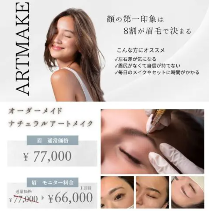 ・初回77,000円で眉アートメイク対応、リタッチ割引ありで継続しやすい料金設定