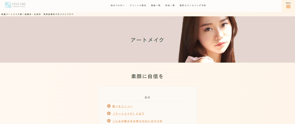 シンシアガーデンクリニックのアートメイクは、自然で理想的な眉やアイライン、リップを実現するデザイン力が特徴です。高崎・太田の2院体制で、多くの症例実績を持ち、安心して施術を受けられます。施術後のメンテナンスにも対応しており、年齢やトレンドに合わせたデザイン調整が可能です。ナチュラルで長持ちする仕上がりを求める方におすすめのクリニックです。