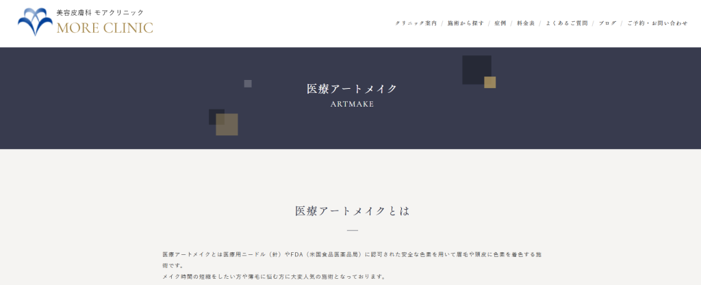 モアクリニックのアートメイクは、講師経験のあるアーティストが施術し、骨格や表情に合わせた自然な眉デザインを提供します。眉だけでなく頭皮アートメイクにも対応しており、薄毛カバーなど幅広いニーズに応えます。水や汗に強く、メイク崩れしにくい仕上がりで、すっぴんでも自信を持てます。