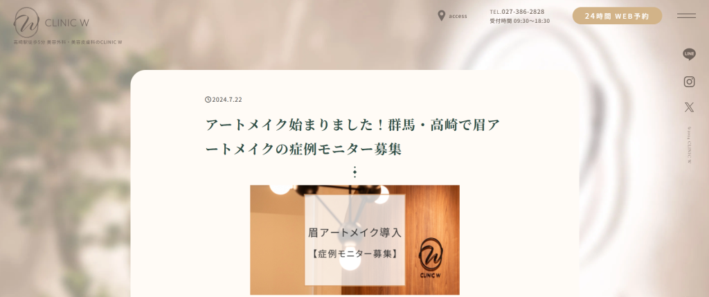 CLINIC W のアートメイクは、経験豊富なアーティストが施術し、自然な毛並みの眉を実現します。駅近で通いやすく、1回・2回の料金設定で無理なく施術可能です。他院でのアートメイク後の相談やアフターケアにも対応しており、安心して任せられるクリニックです。