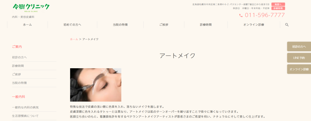 ナチュラルアートメイク東京ブランクリニック札幌院の特徴