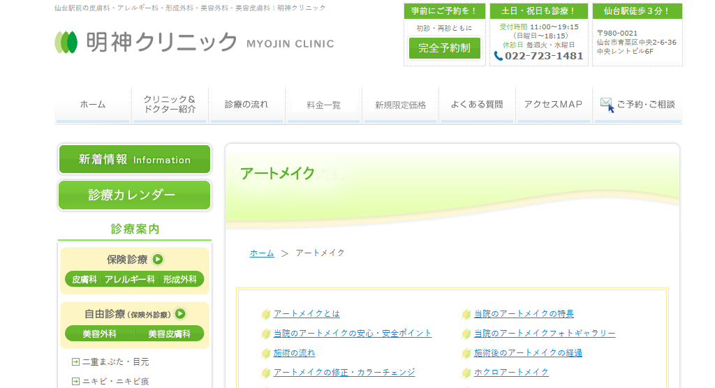 ナチュラルアートメイク東京ブランクリニック仙台院の特徴