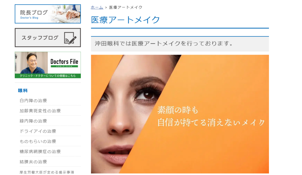 沖田眼科の医療アートメイクは、医師の診察・管理のもとで安全性に配慮した施術を行っています。眉をはじめ、アイラインやリップ、頭皮まで幅広く対応可能。丁寧なカウンセリングを通して一人ひとりの希望や顔立ちに合わせたデザインを提案し、自然で上品な仕上がりを目指せる点が特長です。